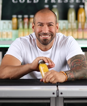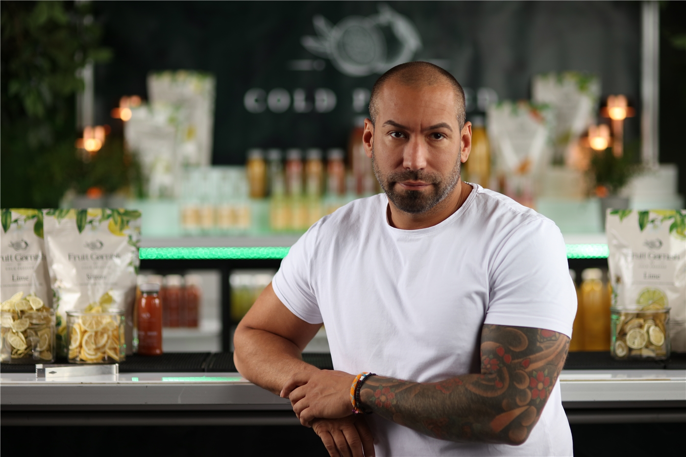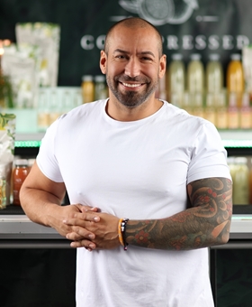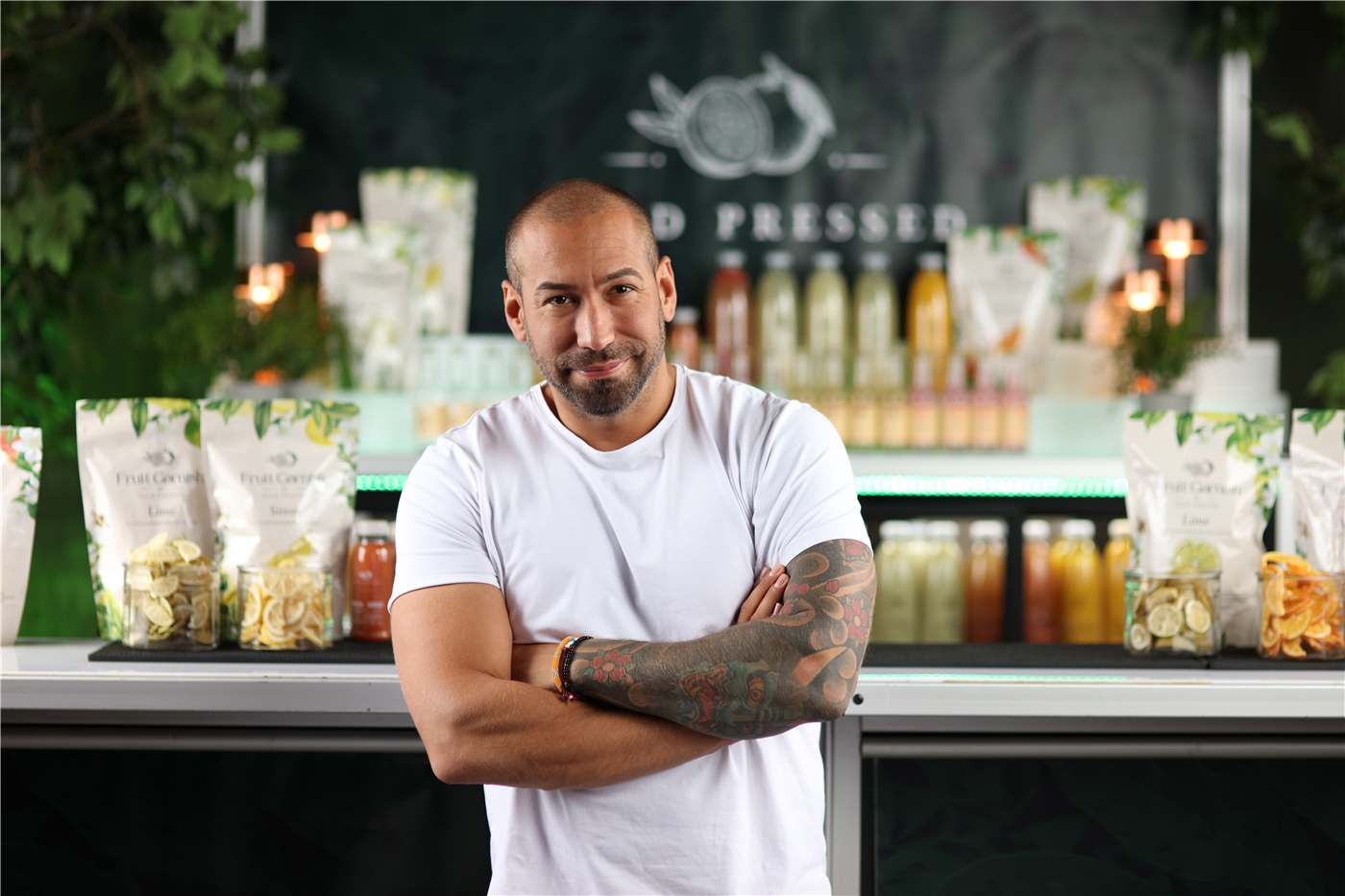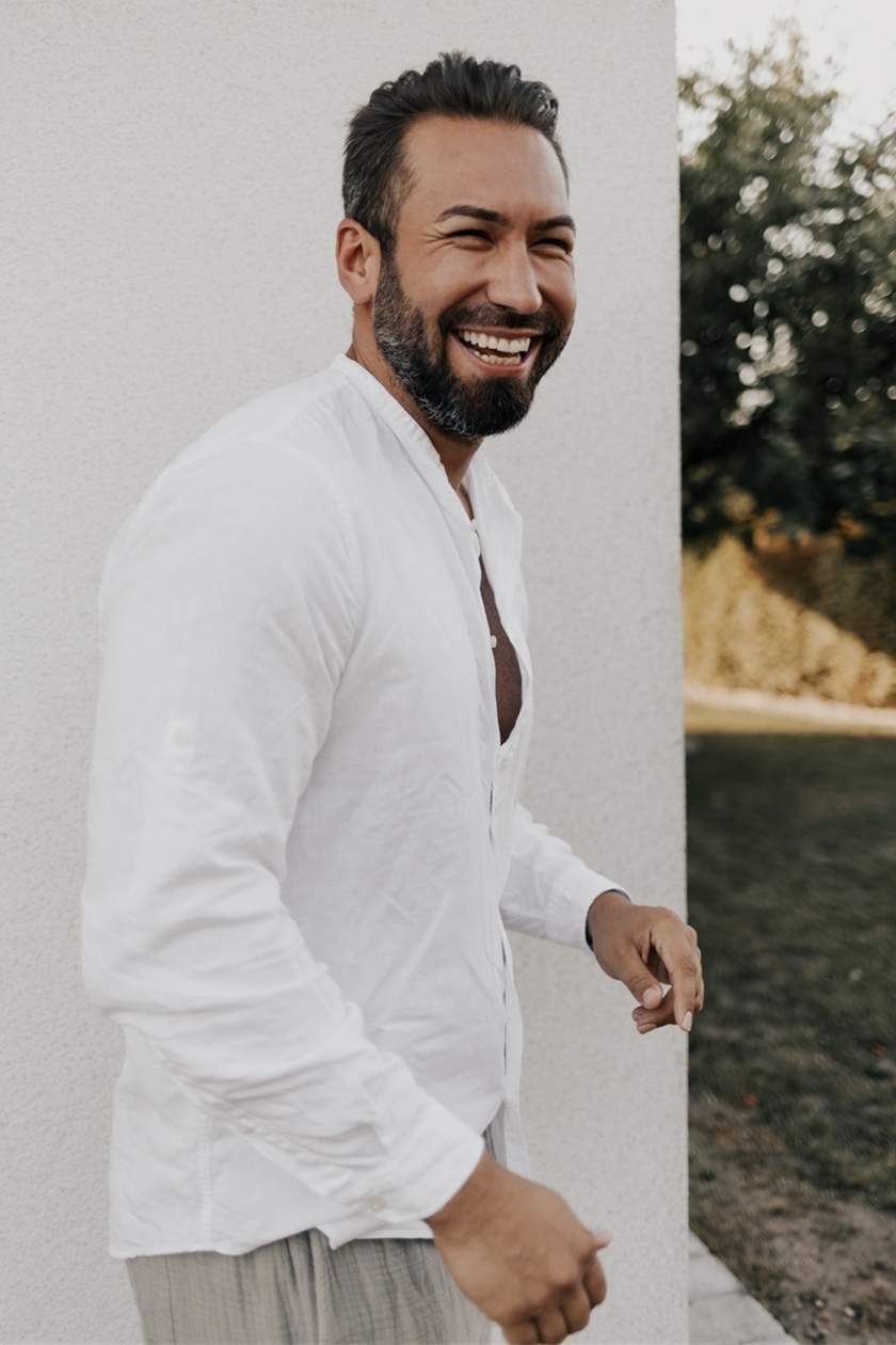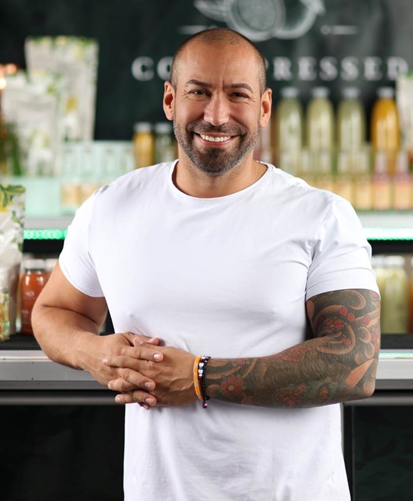 | Stort smil, tatuerad på hela vänsterarmen, brösten och höger sida (revben/rygg) |