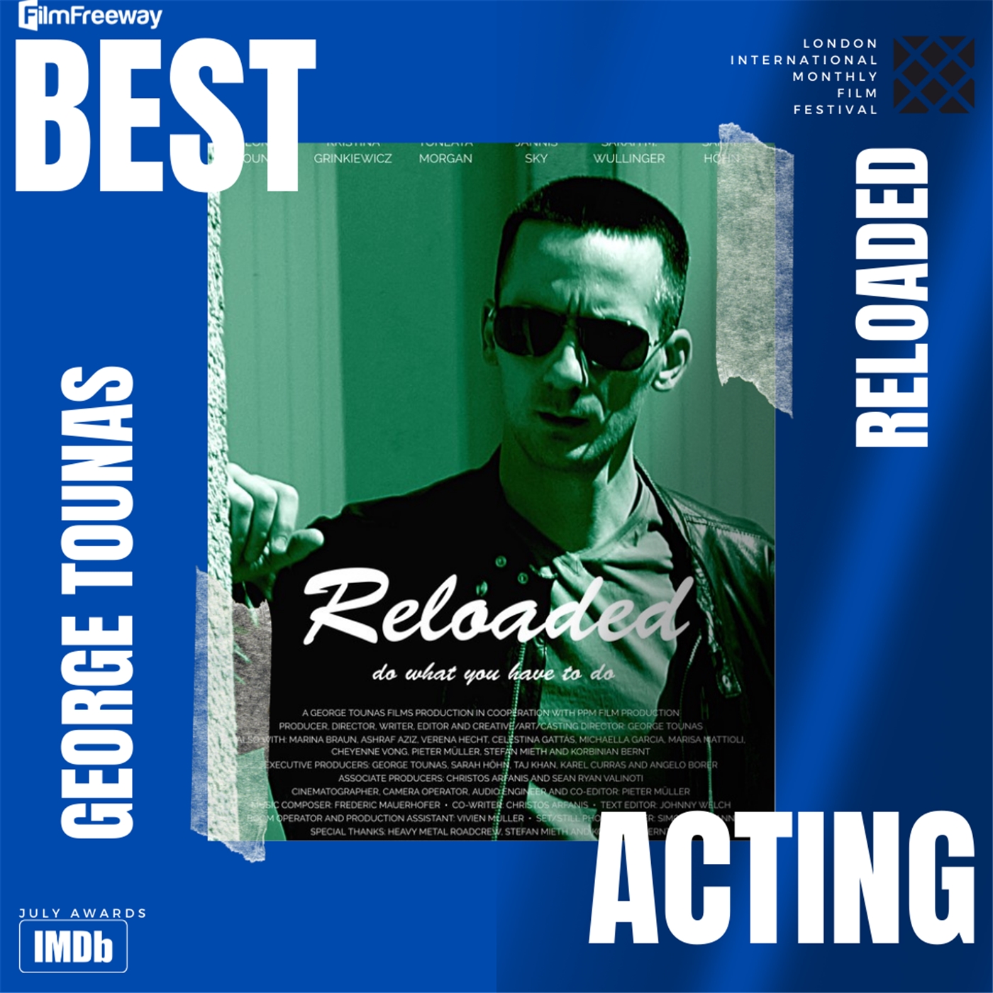 | Navn London International Monthly Film Festival | Beskrivelse Best Acting for playing "Jimmy Cloud" in "Reloaded" | År 2021 |